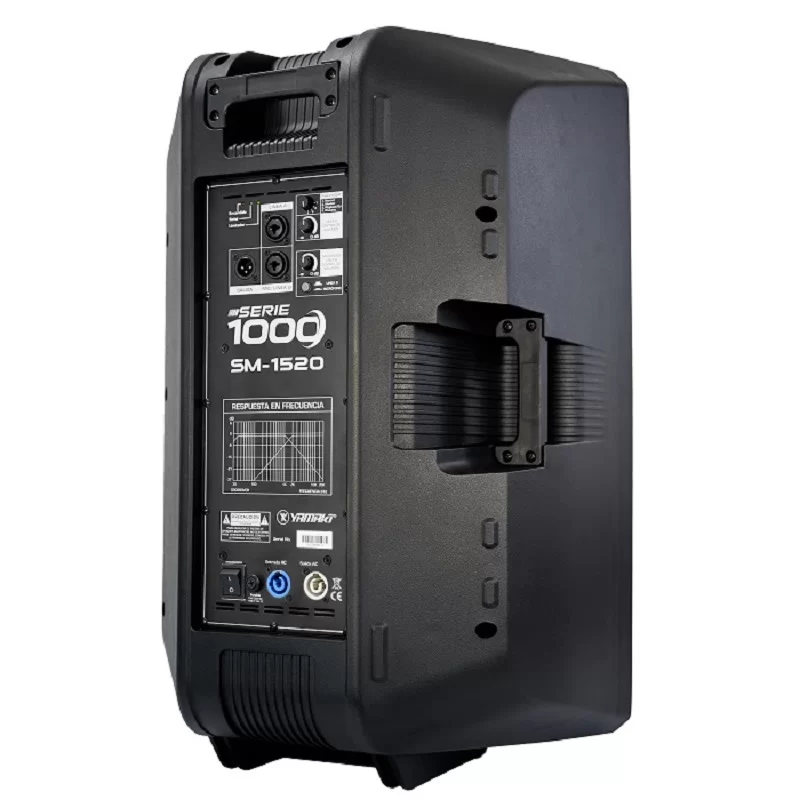 Cabina activa con DSP de 1000W, equipada con un amplificador Clase D y sistema biamplificado. Incorpora un parlante de 15” con woofer de neodimio y un driver de 3”. Cuenta con una entrada para micrófono/línea y otra entrada de línea balanceada, además de salida de señal para conexión con otras cabinas activas. Ofrece múltiples modos de DSP: Normal, Monitor, Playback/DJ y Discurso. Su respuesta en frecuencia abarca de 50 Hz a 18 kHz. Incluye dos puntos de suspensión M10 para montaje